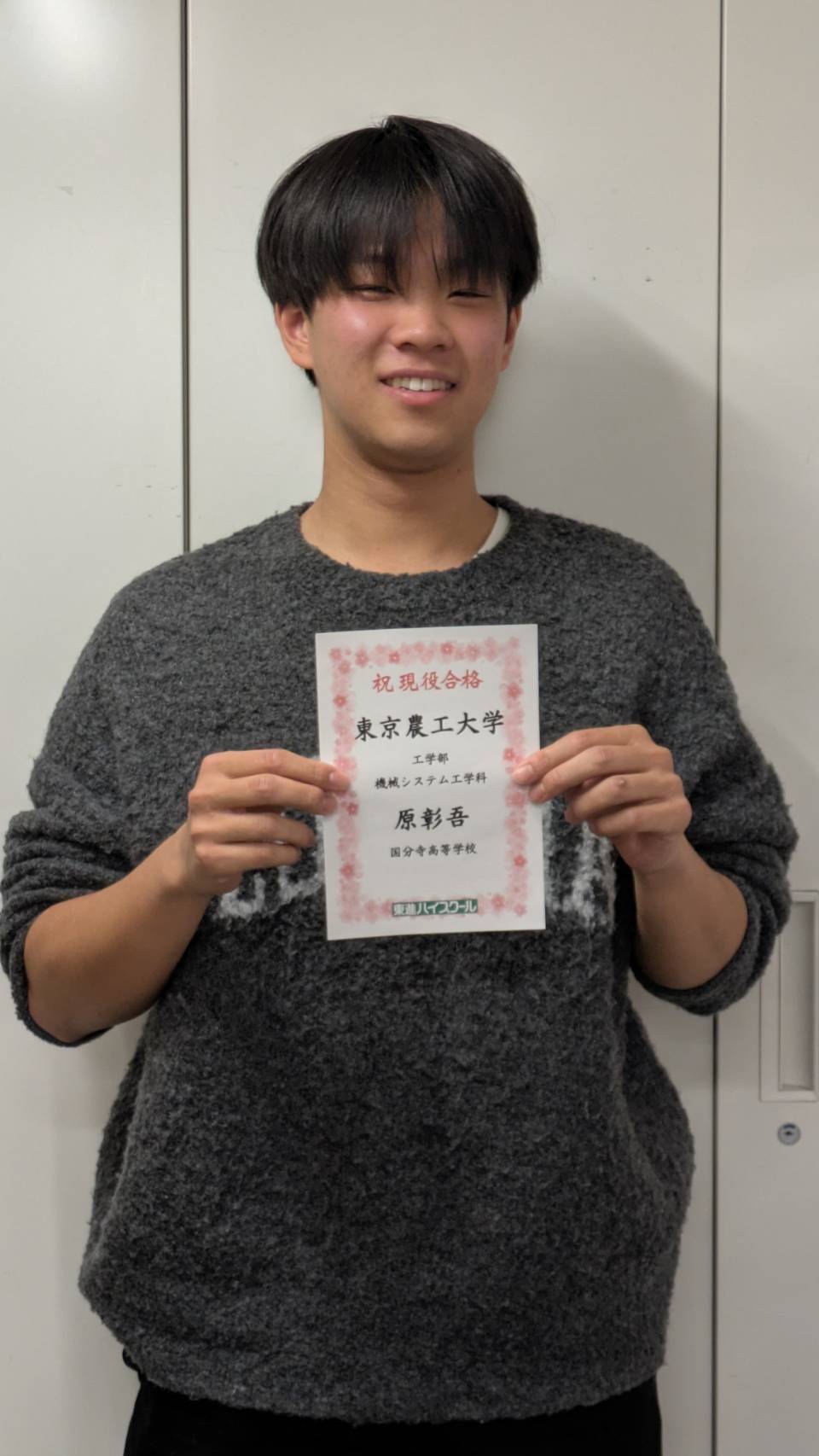 大学に入ってからは英語の学習に力を入れて、海外での研究を視野に入れて頑張りたいです。具体的な研究内容は、再生可能エネルギーといった次世代エネルギーの研究をしていきたいです。東進で培った忍耐力や継続力を生かして頑張りたいと思います。
